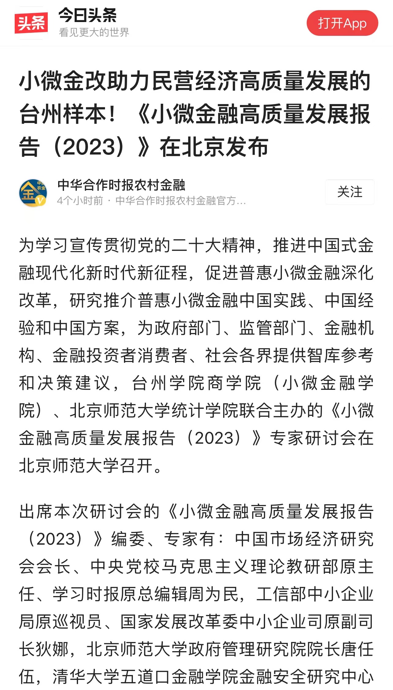 浙江(台州)小微金融研究院、台州学院商学院、台州小微金融学院联合有关机构,组建编委会,组织编写《小微金融高质量发展报告(2023)》,将由中国金融出版社出版。