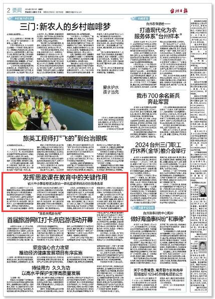 近年来,台州统筹推进大中小学思想政治教育一体化建设地方创新,实践研究影响日益扩大,台州和新疆阿拉尔市大中小学思政课一体化共建开拓了浙江教育援疆的新空间。