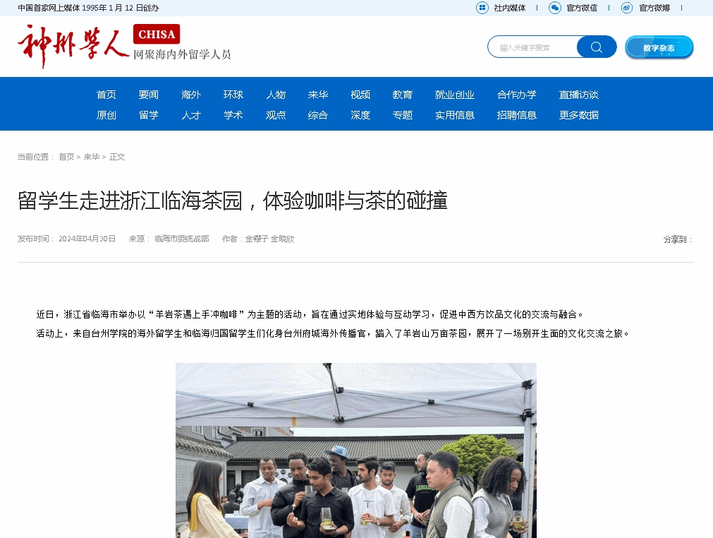 活动上,来自台州学院的海外留学生和临海归国留学生们化身台州府城海外传播官,踏入了羊岩山万亩茶园,展开了一场别开生面的文化交流之旅。