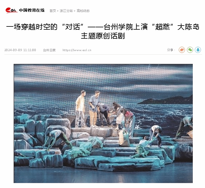 “学生们从零开始,我们也是第一次做话剧。学生们天天排练,我们也陪着一天天熬。” 龚乐瑛说,“以大陈岛为主题的艺术呈现,台州已经有了戏曲、舞剧,我们来做话剧,我想话剧的特点是用语言艺术来表达,与观众的交流更直接。”