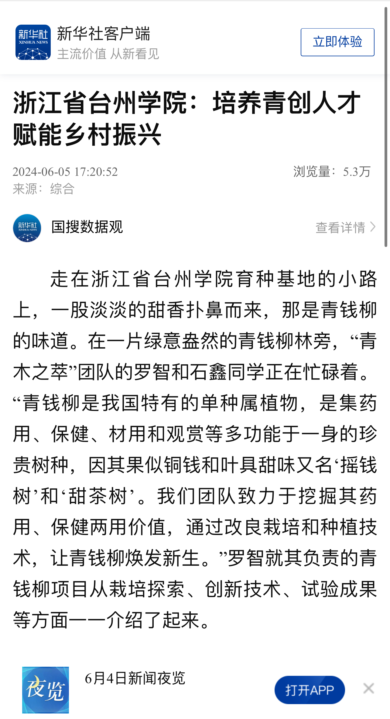 “同学们不仅提升了青钱柳的附加值,还带动了农户增收,为乡村振兴注入了新的活力。”台州学院创业学院院长周瑶说,学校为学生提供了优质的创业服务平台与相关政策,吸引了数十名学生加入,共同打造青钱柳产业链。