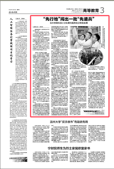 “地方兵”的重要性日益凸显。扎根台州办学,台州学院始终坚持与城市共生共荣,不仅把学科专业建在地方产业群上,还把精兵强将派驻到行业企业一线,不断延伸教育科技人才服务企业的纵深、扩大覆盖面。