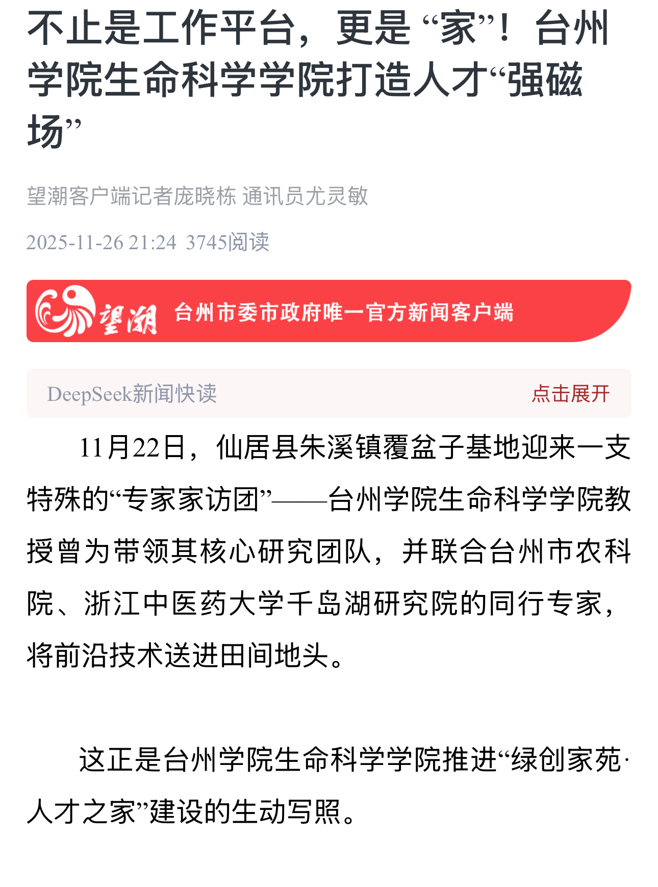 这正是台州学院生命科学学院推进“绿创家苑·人才之家”建设的生动写照。