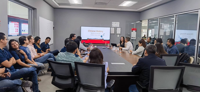 2023年,浙江银轮机械股份有限公司在墨西哥蒙特雷市设立海外工厂,陆续获得了包括特斯拉在内知名汽车生产厂家的合同。目前,该厂共雇用墨籍员工600余人。银轮股份董事长徐小敏与北美银轮总经理陈晓斌、墨西哥蒙特雷工厂负责人接待了杨健国副校长率领的我校访问团,带团参观了工厂,介绍了厂区的基本情况。随后,访问团在台州学院银轮丝路学院为银轮股份墨西哥分公司员工举行了两场培训:一是智能制造学院院长、机器人与智能系统研究所所长陈鹏展教授作题为《AI赋能智能制造:提升效率,引领未来》的专题报告;二是国际处副处长王爱琴教授为银轮股份墨西哥分公司员工举行了一场《中国概况之中国历史》的培训讲座。两场培训工作既传播了先进的制造理念,又传播了优秀的中国传统文化,受到了墨方员工的热烈欢迎。这两场讲座为台州学院银轮丝路学院海外培训拉开了帷幕,也是丝路学院助力台企高质量“出海”的有力举措。
