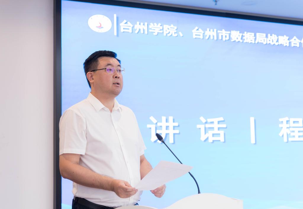 程炜博代表台州市政府,向台州学院和台州市数据局的成功签约表示诚挚祝贺。他指出,当今世界数字技术蓬勃发展,数据作为新型生产要素,已成为国家基础性战略资源和社会经济发展的重要驱动力。他强调,双方应以此次合作为契机,高起点开展战略合作,高效率深化数据研究,高标准打造人才队伍。希望双方充分发挥各自优势,实现资源共享、优势互补、互利共赢,为台州聚力“三条路径”、奋进“三高三新”贡献智慧和力量。