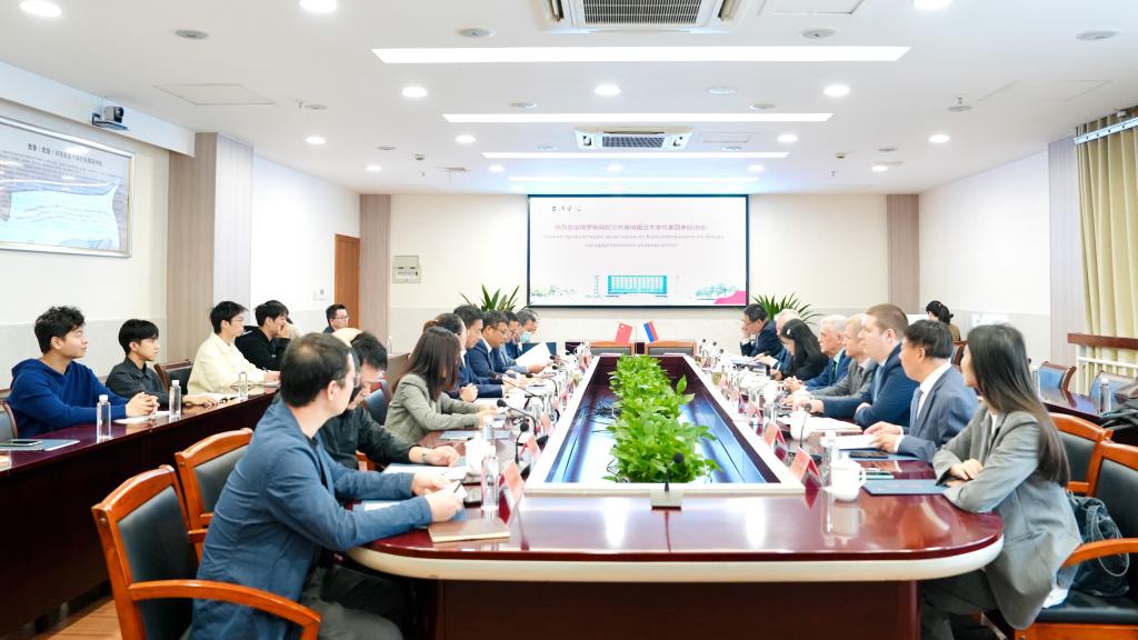10月24日,俄罗斯阿穆尔共青城国立大学副校长亚历山大·科斯梅宁教授一行来校访问,台州学院副校长、党委委员李建军会见代表团,并出席两校合作交流洽谈会。会议由国际处副处长(主持)王爱琴主持。台州佰萃科技服务有限公司董事长李长华、总经理李彦,台州学院教务处、科技处、医药化工学院、建筑工程学院、智能制造学院、材料科学与工程学院等院系负责人及相关处室人员参加了会议。