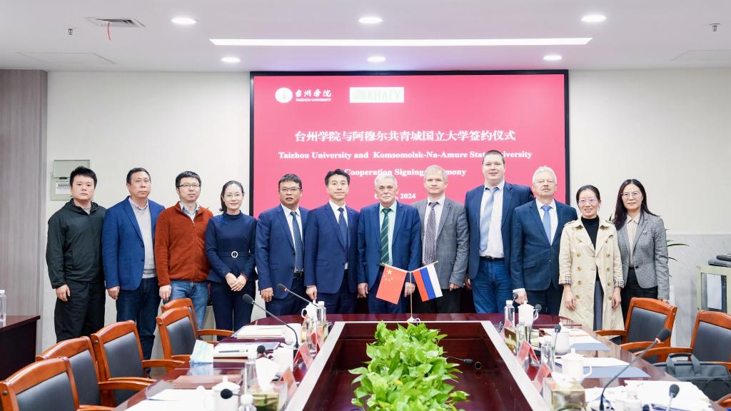 会上,李建军和亚历山大•科斯梅宁分别代表台州学院与阿穆尔共青城国立大学共同签署了《台州学院与阿穆尔共青城国立大学合作谅解备忘录》。双方代表就共同开展科研发表论文、申报国家基金资助项目、建设国际联合实验室、开展学生交流等方面开展了热烈讨论,并达成共识。