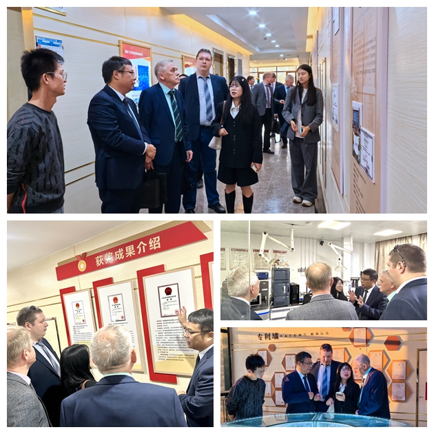 会后,俄罗斯阿穆尔共青城国立大学代表团参访医药化工学院,听取了解质谱分析仪实验室的研究情况、我校创新团队成员关于科技成果转换与产学研合作的详细介绍,深入了解产学研合作项目、省部级获奖项目、我校发明专利转让情况、1139科技服务小分队工作以及全国性竞赛的获奖情况。针对先进膜材料、涂层材料和合金材料等研究方向,代表团表示需回校后进行进一步讨论,并将反馈相关意见。此外,双方重点关注中俄两国基金申请的差异,就申报项目问题进行了探讨。在医药化工学院参访期间,双方达成共识,一致认为签订目标明确的项目合作协议是未来合作的关键,强调项目能够解决实际问题。此外,双方就开展共同撰写论文和人才交流等进行深入洽谈,期待未来在科技创新、学术研究等领域实现更紧密的合作。