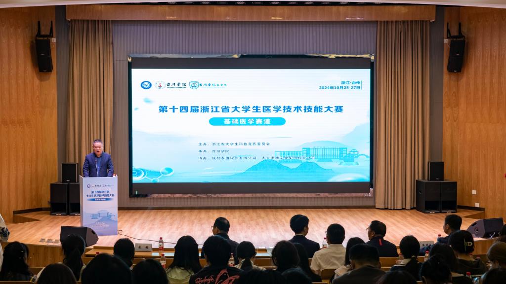 10月25日z26日,第十四届浙江省大学生医学技术技能大赛基础医学赛道决赛在我校顺利举行。本次大赛由浙江省大学生科技竞赛委员会主办、台州学院承办、成都泰盟软件有限公司和麦克奥迪实业集团有限公司协办。来自宁波大学、温州医科大学、浙江中医药大学和台州学院等12所高校33支队伍共146名队员参加了比赛。