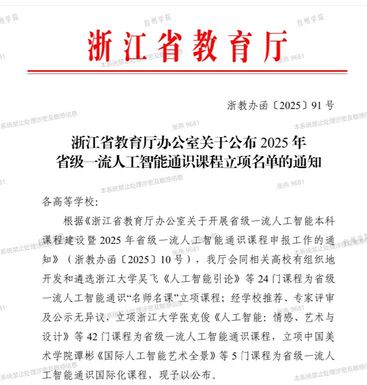 近日,《浙江省教育厅办公室关于公布2025年省级一流人工智能通识课程立项名单的通知》(浙教办函〔2025〕10号)发布,全省共有42门课程立项为省级一流人工智能通识课程,我校方江雄老师主持的《人工智能基础与应用》课程成功入选,彰显了学校在人工智能教育教学领域的建设成效。