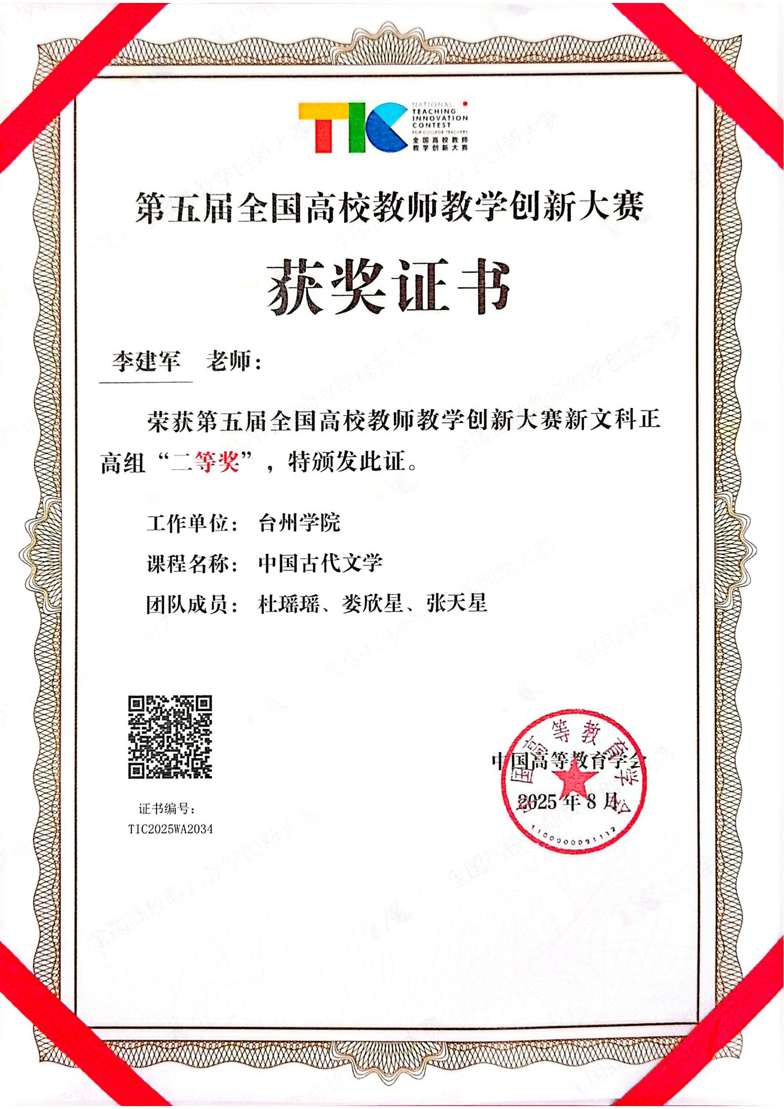 8月16日至19日,由教育部高等教育司指导,中国高等教育学会主办的第五届全国高校教师教学创新大赛决赛在北京理工大学举行。经过激烈角逐,我校参赛教师副校长、党委委员李建军及其团队凭借扎实的专业素养和出色的创新能力,荣获全国二等奖,实现了我校在该项赛事中的历史性突破。