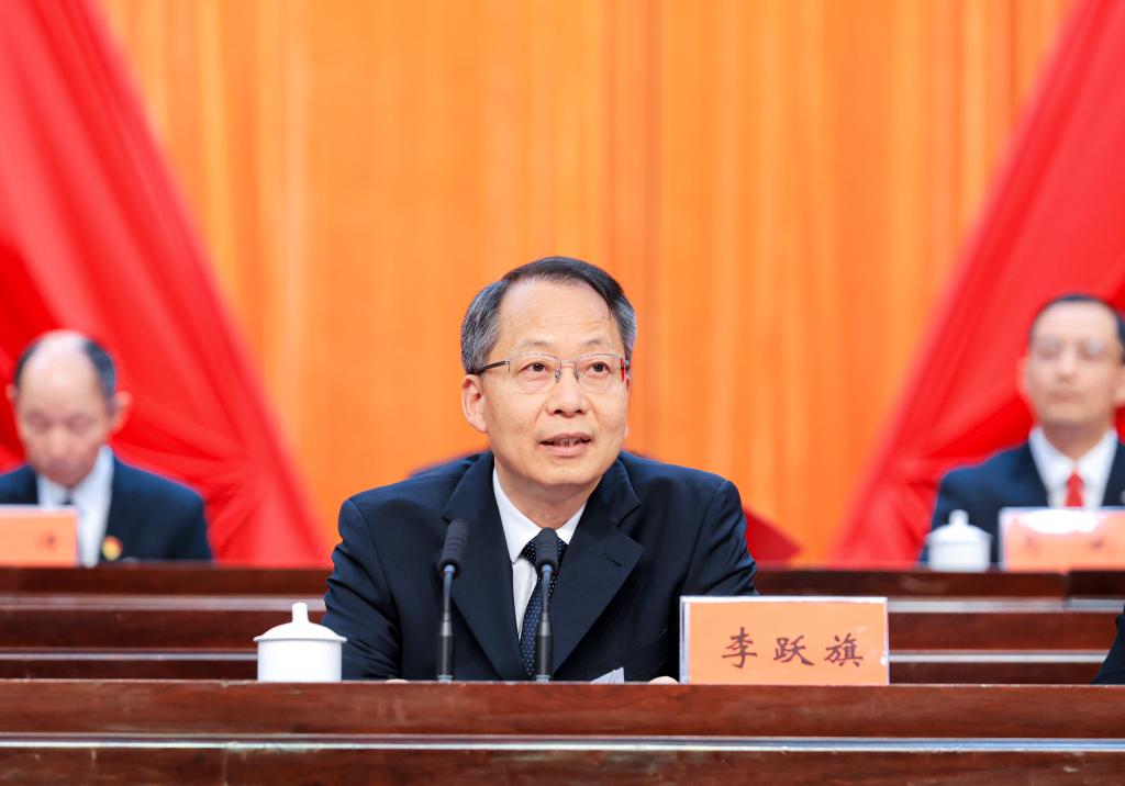 李跃旗代表中共台州市委向大会的召开表示热烈祝贺。李跃旗指出,台州学院是以台州命名的高校,代表着台州高等教育发展的最高水平。自第三次党代会以来,台州学院党委紧紧围绕立德树人根本任务,聚焦“申硕升格创一流”目标,团结带领广大党员和师生员工,锐意改革、开拓创新,在学科建设、人才引育、开放办学、服务地方等方面主动作为,取得了很多突破性进展,学院发展进入了转型跃升、创新蝶变的快车道,学校综合实力、社会声誉和影响力不断提升,这既是每一位台院人的骄傲,也是每一位台州人的自豪。