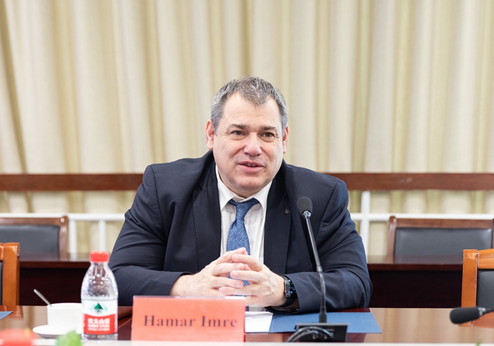 Hamar Imre(郝清新)是匈牙利著名的汉学家,他用流利的汉语感谢学校的盛情接待,表示两校交流初显成效,对未来的合作充满期待,诚挚邀请我校访问罗兰大学,加强联系,推进校际深入合作。