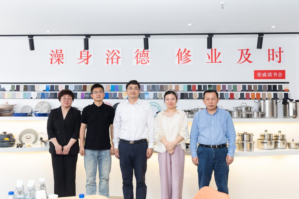 下午,当朱坚、乐传永走进宁波荣威智能厨具科技有限公司时,展厅墙壁上偌大的台州学院校训——“澡身浴德 修业及时”映入眼帘。公司法人、我校宁波校友会副秘书长郭威龙说,2011年,他从台州学院工商管理专业毕业后,就和妻子(王茜茜,我校2010届国际贸易专业校友)一起创业,成立了荣威集团(香港)控股有限公司,多年来,在校训精神的指引下,专注于厨房产品出口及自主知识产权高新技术产品研发、生产,产品远销欧美、亚洲等几十个国家。他十分感恩母校培养铸就了他艰苦奋斗、奋发图强的拼搏精神,希望与母校携手同心,加强联动合作,推动校企协同育人、双方共赢发展。
