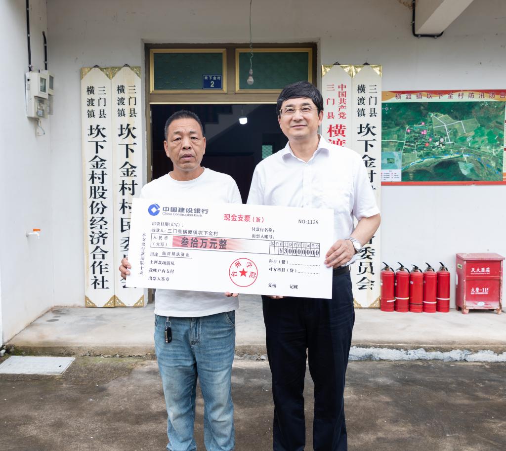 朱坚一行专程来到坎下金村,调研未来乡村创建试点和玫瑰种植项目,并为村庄送上结对帮扶资金 30万元。