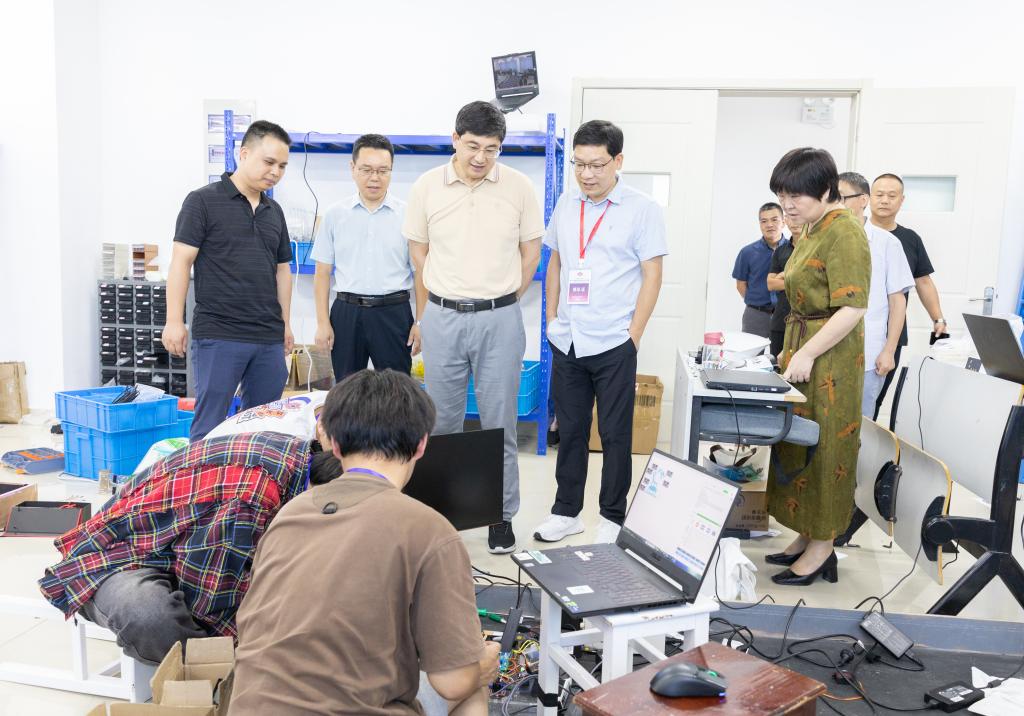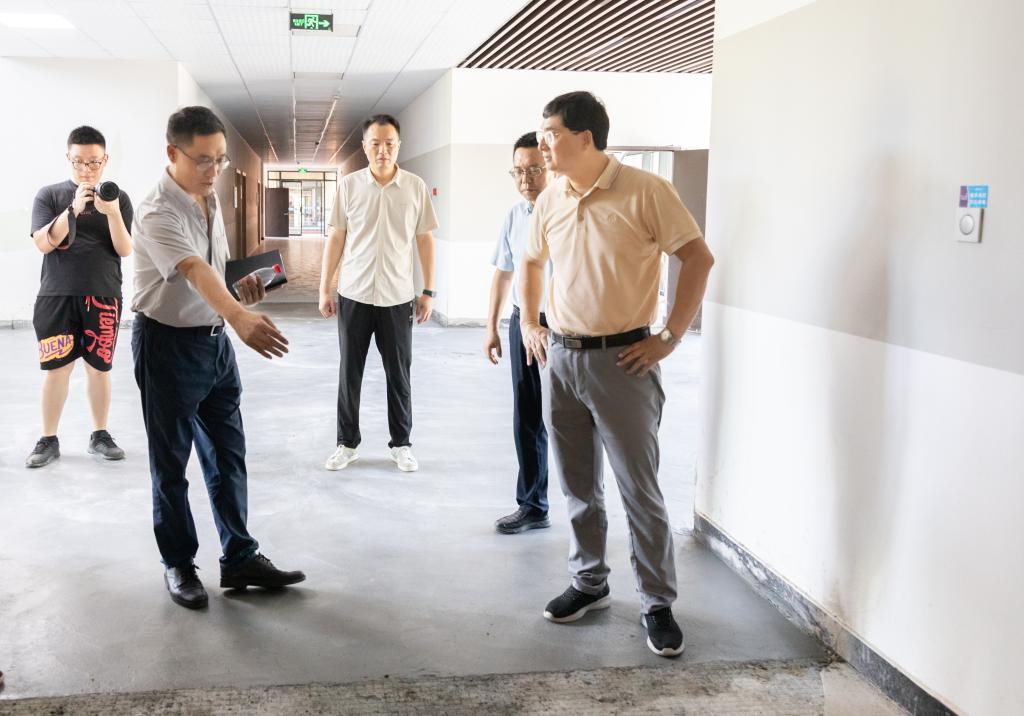 朱坚首先看望正在备战2024年全国大学生电子设计竞赛省赛的师生。“你今年大几了?老家哪里的?比赛准备得怎么样了?”朱坚详细询问大家备赛情况和竞技状态,了解学生对学校工作的建议,并预祝大家在日后的比赛中取得好成绩。来到生命科学学院大楼,在听取学院科研团队的汇报后,朱坚对大家取得的成果表示充分肯定,勉励大家勇攀高峰,争取更大的突破,为学校事业发展作出更加积极的贡献。在椒江校区三期项目施工现场,朱坚对奋战在一线的工作人员表示慰问,并提醒大家要重视安全防范工作与防暑降温。在听取完施工情况汇报后,朱坚指出,椒江校区三期项目是学校提升教育质量、优化教学环境、增强师生福祉的大事,要严把工程质量关、安全关,确保如期完工。