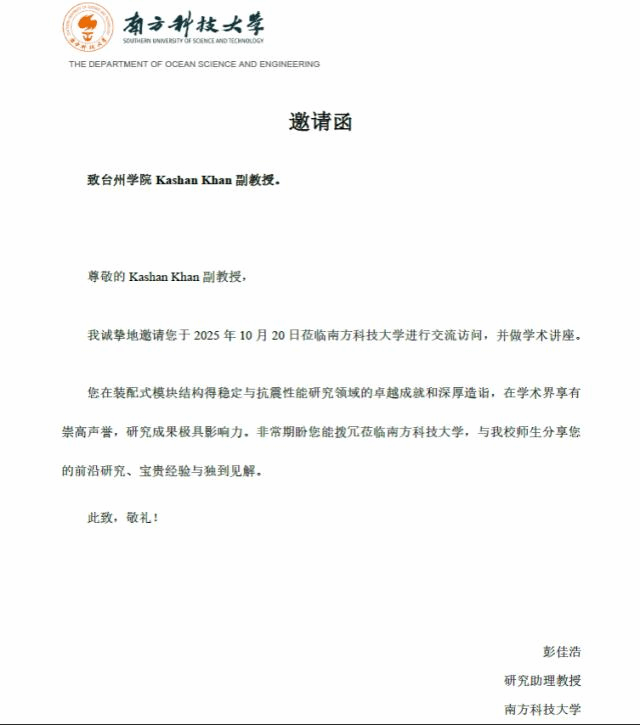 此次受邀讲座不仅进一步提升了台州学院在海洋工程与模块化结构领域的影响力,也为我校与南方科技大学在科研合作、人才培养及平台共建等方面搭建了良好桥梁,为后续深入合作奠定了坚实基础。
