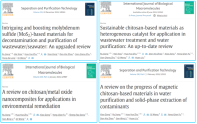 近期,国际期刊Separation and Purification Technology(中科院 工程技术类一区TOP期刊)和International Journal of Biological Macromolecules(中科院 化学类一区TOP期刊)正式录用了蒋茹博士2篇关于环境水处理材料相关综述文章,这是蒋茹博士今年在中科院一区TOP期刊上接收/发表的第3和第4篇综述论文。这4篇综述论文主题分别为壳聚糖/金属氧化物、磁性壳聚糖材料、壳聚糖基环境催化剂和硫化钼基环境功能材料。