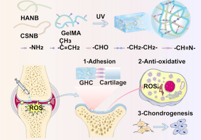 图1. GHC水凝胶治疗软骨损伤的功能和机制示意图