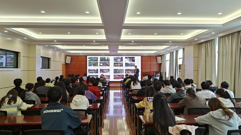 闫国永副教授作了题为《植物多样性和菌根类型对森林碳储量的影响》学术报告。报告中,系统地探讨了植物多样性与不同菌根类型对森林碳储量的影响及其作用机制,分析了植物多样性对森林生产力的促进作用,评估了不同菌根类型在碳固定和储存过程中的功能,并揭示了两者之间的相互作用对森林生态系统碳储量的综合影响。会后,双方就相关学术问题进行了深入的探讨与交流。