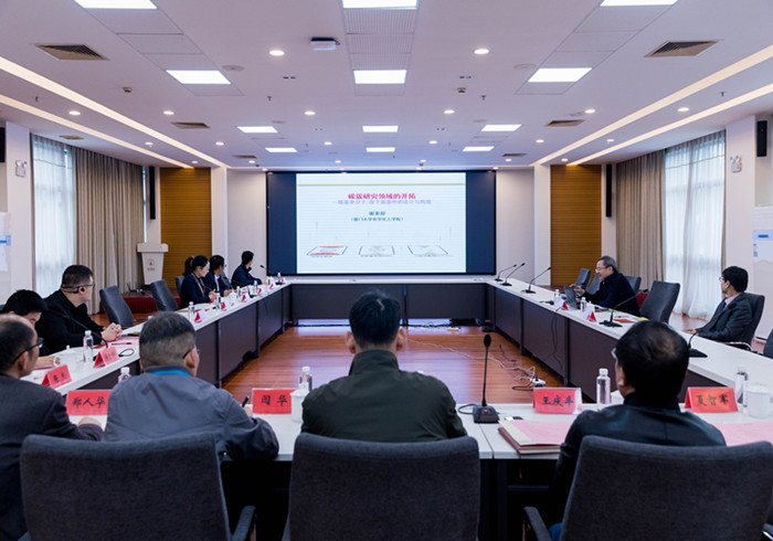谢素原院士以“碳簇研究领域开拓”为题,为与会者带来了一场精彩的学术报告。他介绍了全球首例全碳分子/原子簇器件的背景、构造,重点阐述了石墨层间裂结和电极界面的构建方法,以及调制富勒烯电输运性质的最新研究进展。谢院士还深入探讨了碳簇族在催化、光电转换等前沿领域的技术应用,并分享了团队在研发过程中的经验与教训。参会教师们积极提问,就研究课题设计、科研实验设备等方面与专家进行了深入探讨。谢院士鼓励在座的科研工作者要坚定信心,作为科技工作者要有作为有担当,勇于探索未知,开展前沿性研究。
