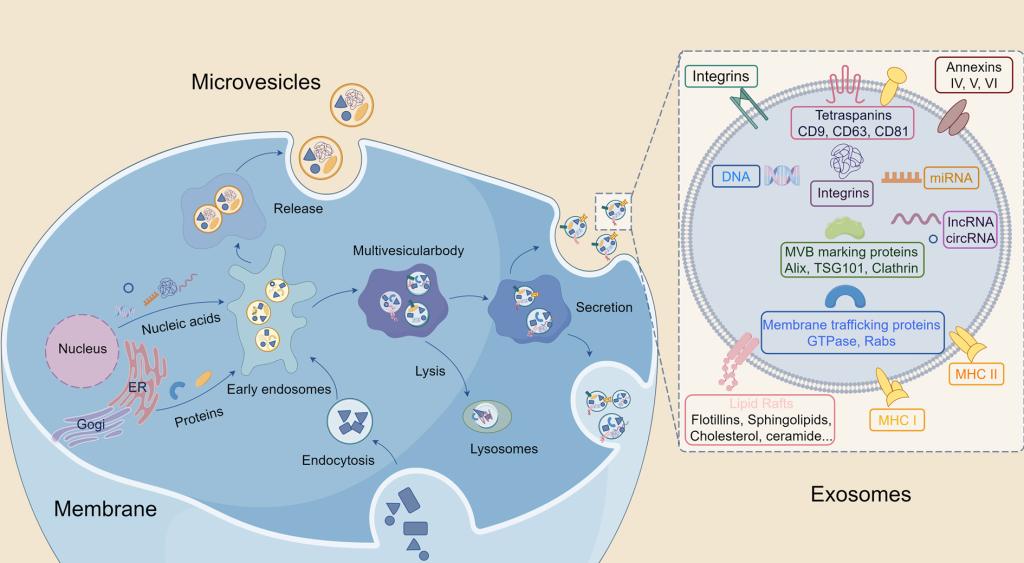 细胞器产生的核酸和蛋白质通过胞吐将外泌体排出细胞