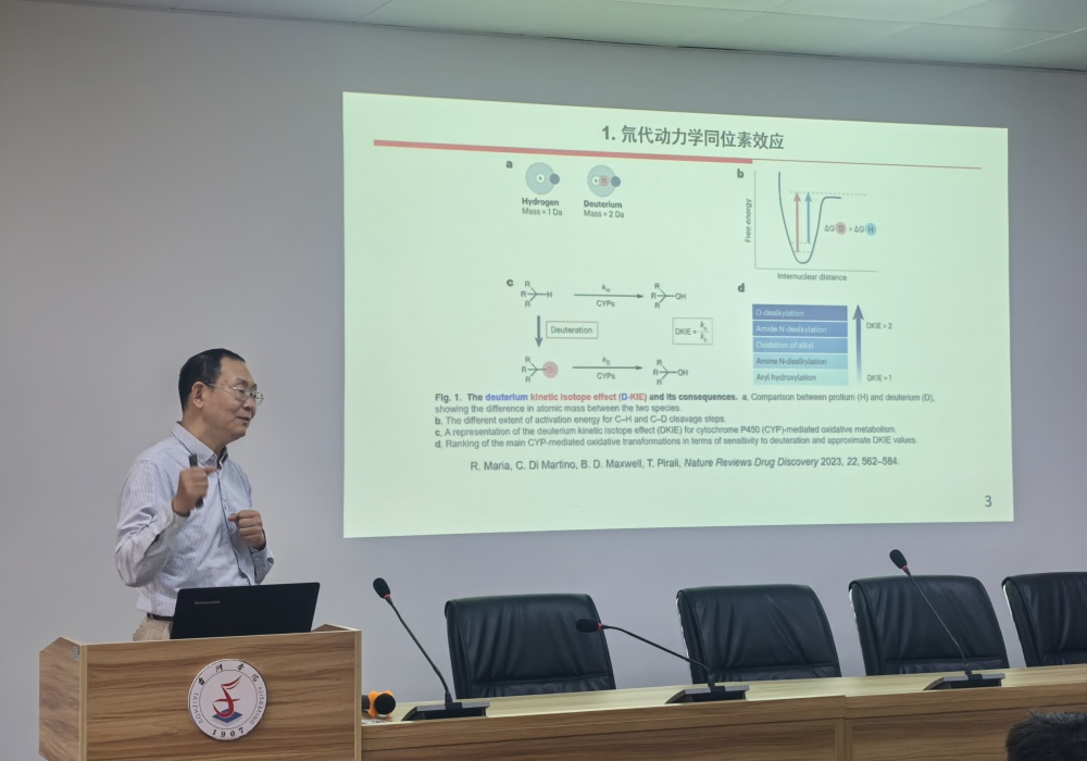 黎占亭系统介绍了氘代药物研发的最新进展,重点阐述了氘代分子通过延长代谢周期、降低毒性等特性在药物优化中的独特优势。他结合自身团队成果,分享了氘代药物从专利突破到商业化落地的典型案例,并探讨了该领域面临的挑战与未来方向。