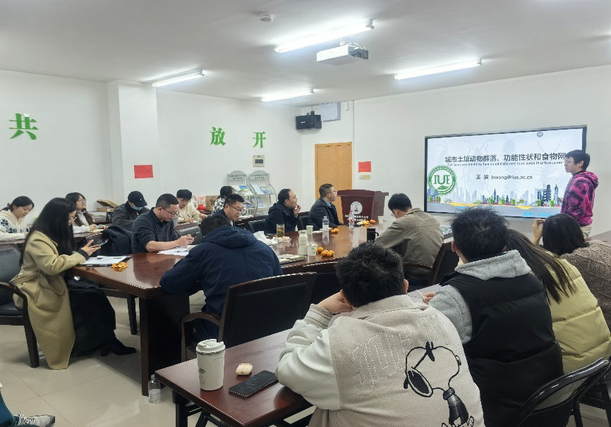 中国科学院城市环境研究所王滨助理研究员作了题为“城市土壤动物群落组成、性状特征和食物网结构”的专题报告,阐述了城市土壤动物群落的组成多样性、关键功能性状等,揭示了城市化梯度下土壤食物网结构的演变规律及其对生态系统功能的影响机制。