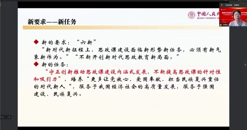 中国人民大学马克思主义学院吴玉章讲席教授冯秀军作了题为《如何打通思政课入心“最后一公里”》,她提出,入耳入脑入心是“守正创新推动思政课建设内涵式发展,不断提高思政课的针对性和吸引力”的必然要求,也是衡量思政课实效的根本标准。“入心”是思政课教学的“最后一公里”,问题是思政课“入心”之路的起点和路标,捕捉问题是思政课教师的基本功,破解问题是讲深讲透讲活、入耳入脑入心的根本,故事是问题的血肉,问题是故事的经络。