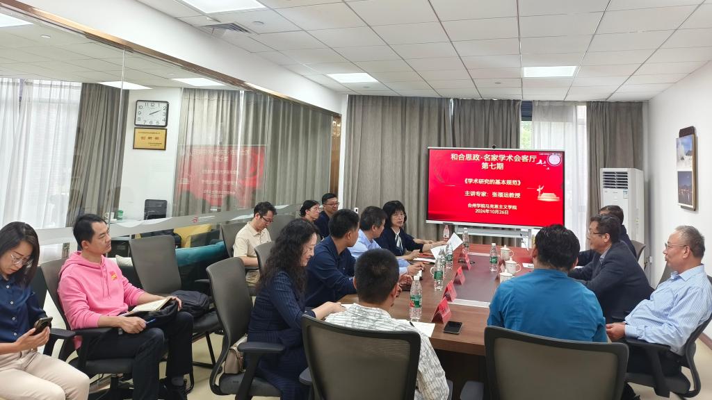 10月26日,马克思主义学院成功举办了第七期“和合思政·名家学术会客厅”学术交流活动,特别邀请南京航空航天大学马克思主义学院王岩教授、南开大学马克思主义学院纪亚光教授、中国石油大学(华东)马克思主义学院张福运教授等三位全国知名专家来校开展学术交流活动。校党委委员、宣传部部长蔡海江、学院党总支书记王胜以及部分老师共同参加。院长张天华教授主持本次报告会。