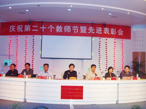 教师节之夜,我校党政领导、教授、功勋教师、劳动模范以及2003年获得各项荣誉的教师欢聚一堂,庆祝第二十个教师节。会上校党委书记、校长蒋承勇发表重要讲话,校党委副书记包国强主持。