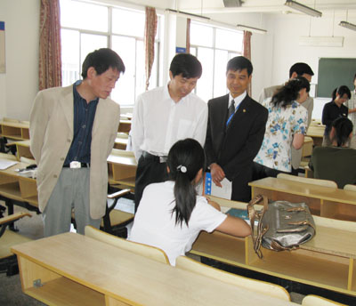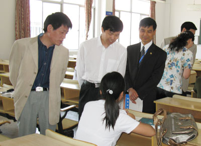 5月12日上午,在出席我校本科教学评估汇报会后,浙江省委教育工委副书记、省教育厅副厅长蒋胜祥,省教育厅高教处处长庄华洁,在台州市教育局局长林晓鸣、副局长陈肖力陪同下,深入有关学院和学生课堂考察,并就高校思想政治理论课的改革建设作专题调研。校领导包国强、张辉、王正等陪同走访。