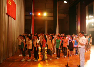 “我志愿加入中国共产党,拥护党的纲领,遵守党的章程,履行党员义务,执行党的决定,严守党的纪律……”伴随着雄壮的《国际歌》,我校400多名新党员在校党委书记蒋承勇教授的领誓下,举起右手,面向党旗庄严宣誓。6月16日下午,在纪念建党八十七周年之际,校党委在校影剧院举行庄严而隆重的学生党员宣誓活动。组织部部长王正主持仪式。