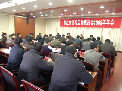 1月11日,浙江省高校后勤研究会思想政治工作委员会2008年年会在我校召开。来自全省15所高校的32名代表参加了会议。校党委书记陈浩、副校长张辉出席会议开幕式并致辞。省高校后勤思政会主任胡征宇致开幕词,秘书长严柏炎主持会议。