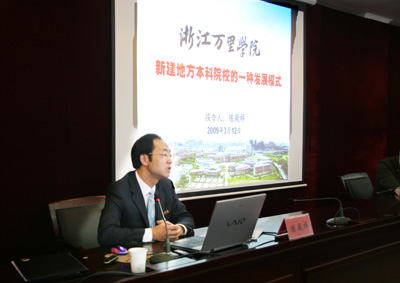 3月12日下午,校学术报告厅内济济一堂,气氛热烈,浙江万里学院党委书记陈厥祥研究员在作题为《浙江万里学院—新建地方本科院校的一种发展模式》的报告。校党委书记陈浩主持报告会。