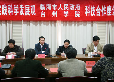 3月17日下午,实践科学发展观——临海市政府与台州学院科技合作座谈会暨“十问台州学院”专题恳谈会之一在我校第一会议室召开。临海市委常委、副市长杨政参加座谈,副校长冯尚申主持会议。