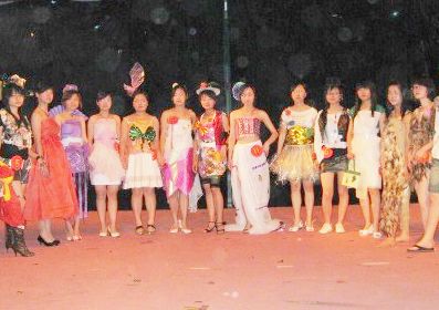 学生自己确定方案、自己收集材料、自己动手制作、自己充当模特,废旧横幅、塑料袋、蚊帐、桌布、鸡毛掸、光盘……一件件不起眼的废旧物品在选手们富有创意的制作下重新焕发光彩。最终来自物电学院的上官王娜等人制作的5号作品《预言》荣获一等奖,潘小曼和邱俏杰分享二、三名。