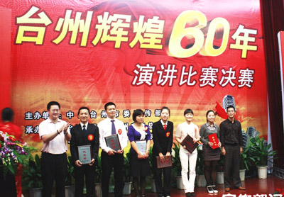 来自台州各县市区、各高校及台州演讲与口才协会的15支代表队选手,在经过初赛和复赛后入围最后的总决赛,展开了一场“语言艺术”的对抗赛。选手们声情并茂、激情洋溢的演讲感染了在场的所有观众。他们通过60年来台州的交通、民营经济、信息传播方式等的巨大变化的描述,呈现了台州辉煌60年经济社会的巨大发展成就。其中的助讲人点评板块开创了国内演讲方式的先例,受到了广大观众和评委的一致好评,为整个决赛现场增添了一份独特的亮点。