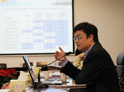 李鲁在听取了学校工作汇报后,对我校“后评估阶段”的发展思路以及近期的工作给予了充分肯定,并以《浙江高等教育的十年发展与百年思考》为题作专题报告。报告回顾了十年来浙江高等教育所取得的成绩。十年来浙江高等教育发展的主要经验是以高教园区为抓手,不断扩大了高等教育容量;以学科与专业建设为重点,着力提高高等教育质量;以创新团队为目标,努力打造高水平师资队伍;高等教育实现规模跨越发展、质量同步提高。
