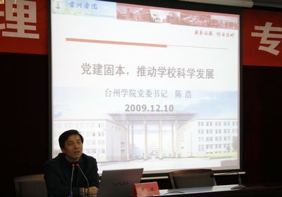 陈浩指出,发挥党委领导的核心作用,要牢牢确立“一个大学的发展,关键在党”的理念,不断完善党委领导下的校长负责制;高校领导要成为社会主义的政治家、教育家,增强政治坚定性和敏锐性,树立先进办学理念,培养宽广视野和战略思维,增强改革创新意识,提高统筹协调能力,并要有崇高的人格魅力。发挥基层党组织的战斗堡垒作用,必须围绕中心抓党建,凝聚人心促发展,使党建工作成为促进学校发展的助推器;重视基层党组织的基础性工作,眼睛向下,创新工作方法,找准工作载体,切实有效地解决问题。发挥党员教师的先锋模范作用,关键是让党员教师找准自己推动发展、成就事业、促进和谐的角色定位,大力推行“党员人才工程”,处理好“活”与“和”的辩证统一关系,和为本、活为要。