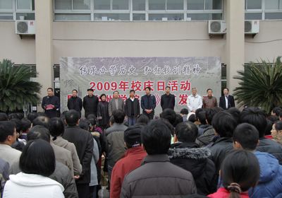 他希望广大师生按照“校训引领,科学发展”的总体要求,围绕“传承办学历史 弘扬校训精神”主题,以校志发行和校庆日活动为契机,深入实施“五个一”工程,积极筹划,狠抓落实,广泛宣传学校优良办学传统,全面展示学校辉煌办学成就,进一步激发全校师生爱校、建校、强校热情,团结广大校友,为建设有影响有特色的地方大学凝心聚力,增光添彩!