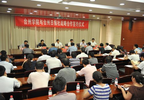校党委副书记韩建飞、台州日报社社长潘通天共同签署《台州学院 台州日报社战略合作协议书》。根据协议,双方将本着优势互补、互惠互利、合作双赢、共同发展原则,建立长期稳定的战略合作关系;通过联席会议制度、联络员制度等,建立有效的合作机制和平台;根据文化大市建设需要,联合开展文化项目研究;充分发挥各自优势,相互支持帮助,促进双方科学发展。双方同时还将在学术交流、人才培养等方面开展紧密合作。