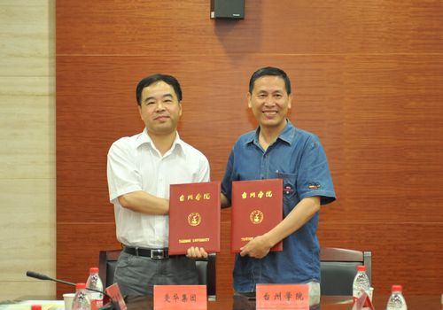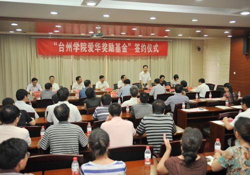 校党委副书记韩建飞与爱华集团党委书记、董事长兼总经理项道铨共同签署了《台州学院“爱华”社会主义核心价值观优秀践行者奖励基金合作协议书》。根据合作协议,爱华集团将出资500万元在我校设立专项奖励基金,对积极践行社会主义核心价值观的优秀学生、老师以及在社会主义核心价值体系理论研究方面成果突出者进行重奖,鼓励师生勤奋学习,积极开展学术研究,不断提高自身综合素质,借此推动我市高等教育事业的发展。基金设立期限为20年,并将逐年增加奖励额度。
