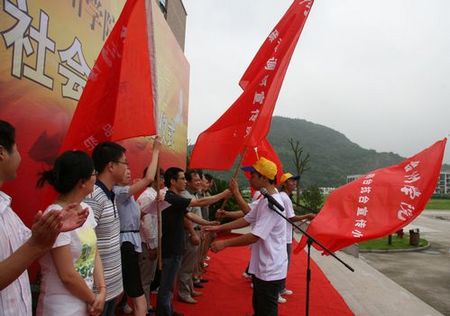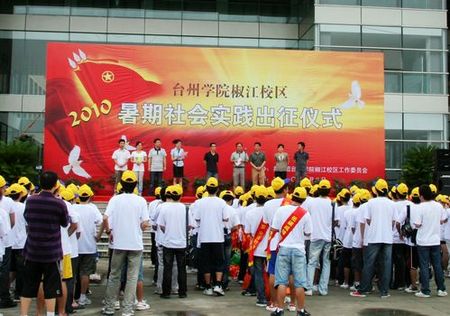 为进一步引导大学生积极投身我省推进“创业富民、创新强省”总战略的伟大实践,使广大青年学生在社会实践中受教育、长才干、做贡献,提高服务奉献意识、实践能力和社会竞争力,促进健康成长成才,7月8日上午,我校临海校区、椒江校区同时举行2010年暑期社会实践活动出征仪式。校党委副书记包国强出席临海校区出征仪式并作动员讲话;椒江校区管委会有关领导及校党委宣传部、学工部、保卫处、团委、服务中心及各学院相关负责人出席仪式。全校59支实践队伍近800名实践队员参加了出征仪式。