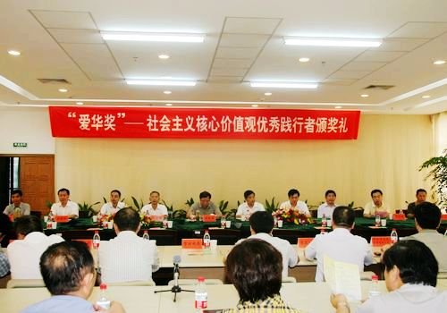 9月9日下午,在第26个教师节来临之际,首届台州学院“爱华奖”——社会主义核心价值观优秀践行者颁奖礼在椒江校区隆重举行。台州市委书记陈铁雄,台州市委常委、宣传部部长胡斯球,台州市委常委、市委秘书长马世宙,椒江区委书记王建平,台州市委副秘书长金敬中,台州市教育局局长林晓鸣,爱华集团党委书记、董事长兼总经理项道铨及我校党政领导等出席典礼。校党委书记陈浩主持。