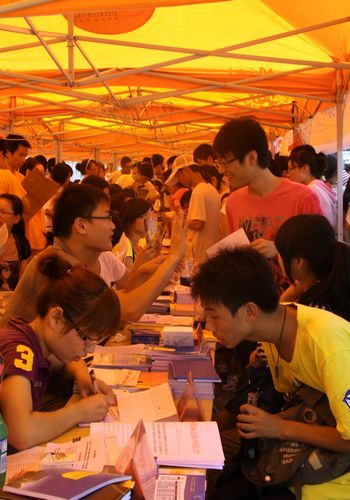 记者留意到今年校园里学生推销的情形几乎不可见,对此杨老师解释道:“今年我们在推销方面严格限制,而且新生们的自我警惕性也比较强。”