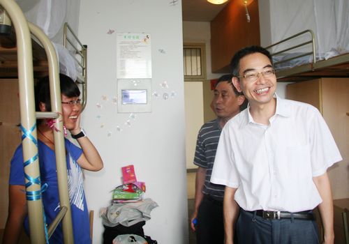 校长龚建立、椒江校区管委会主任李茂珍在迎新现场指导工作