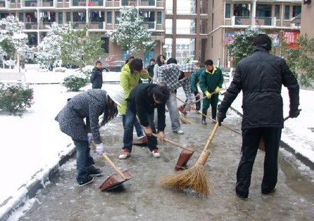 为保障正常的校园秩序,16日上午,经贸管理学院学生党员自发组织队伍清扫校园道路冻雪,他们自备扫把、畚箕、铁锹等工具,自行分配学生生活区进行清扫工作。同学们个个精神抖擞、动作迅速,经过一上午的清扫,学生生活区的道路冻雪基本被清除。参与清扫的党员们纷纷表示,只要出一点力,就可以给大家带去方便,也有利于校园的安全保障。