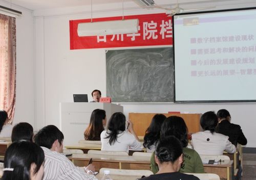 濮永革从浙江大学数字档案馆建设的现状出发,介绍了浙江大学在档案标准规范建设、数字资源建设、信息平台建设、硬件支撑环境建设及配套子系统建设等方面的进展情况,在此基础上,向大家展现了今后几年数字档案室发展规划以及未来智慧型数字档案室的建设蓝图。濮老师的讲座内容丰富、贴近工作实际,为我校建设数字档案室提供了新的建设思路,尤其在数字档案信息开发利用上,在档案的融资功能上,带给我们许多启发性的思考。