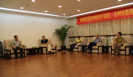 7月1日,台州经济开发区管委会副主任李昌明、台州市科协党组成员王颂兵一行五人来我校椒江校区,就开发区与我校开展合作进行调研。副校长冯尚申、科研处处长赵小明、物电学院院长陈卫平、机械学院院长聂秋根、地方合作处副处长杨健国等出席调研会。